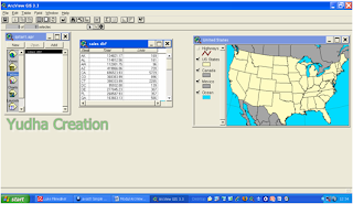 48. Secara standar, ArcView menggunakan judul peta dengan kata ‘United States’. Judul tersebut dapat diganti, dengan cara dobel klik pada kata ‘United States’ tersebut.