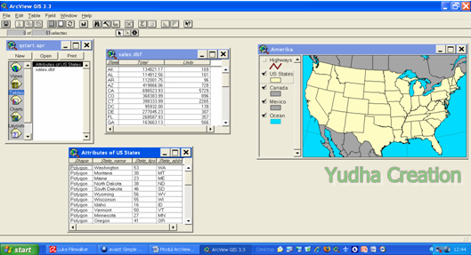 13. Klik tombol Join. Data yang ada pada sales.dbf akan menyatu ke tabel attributes of US States.